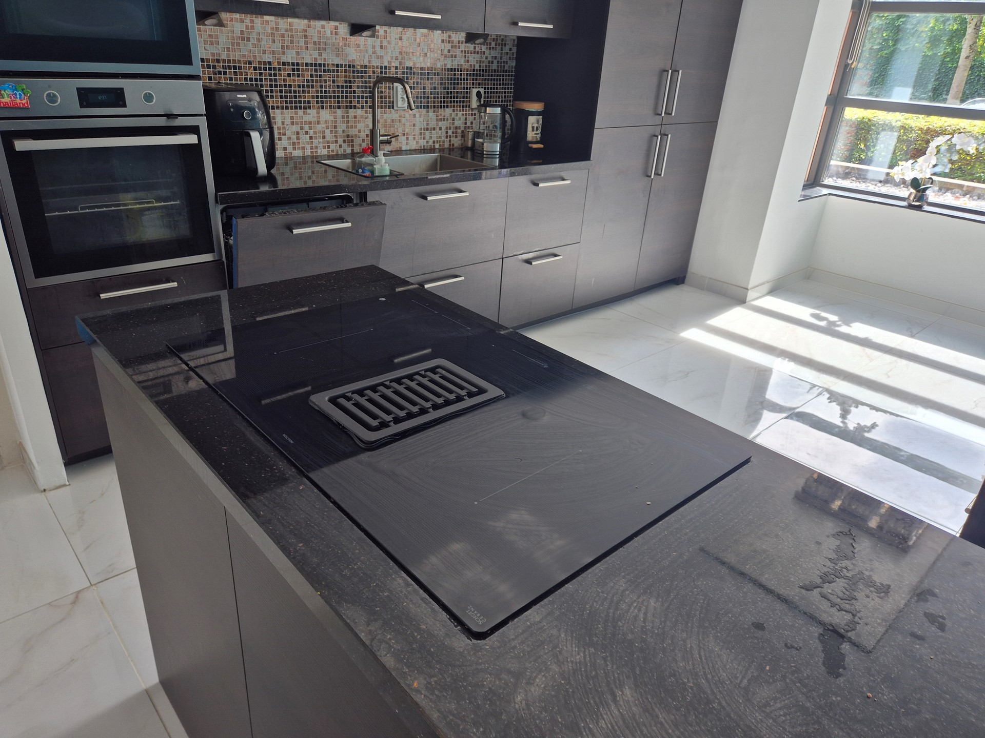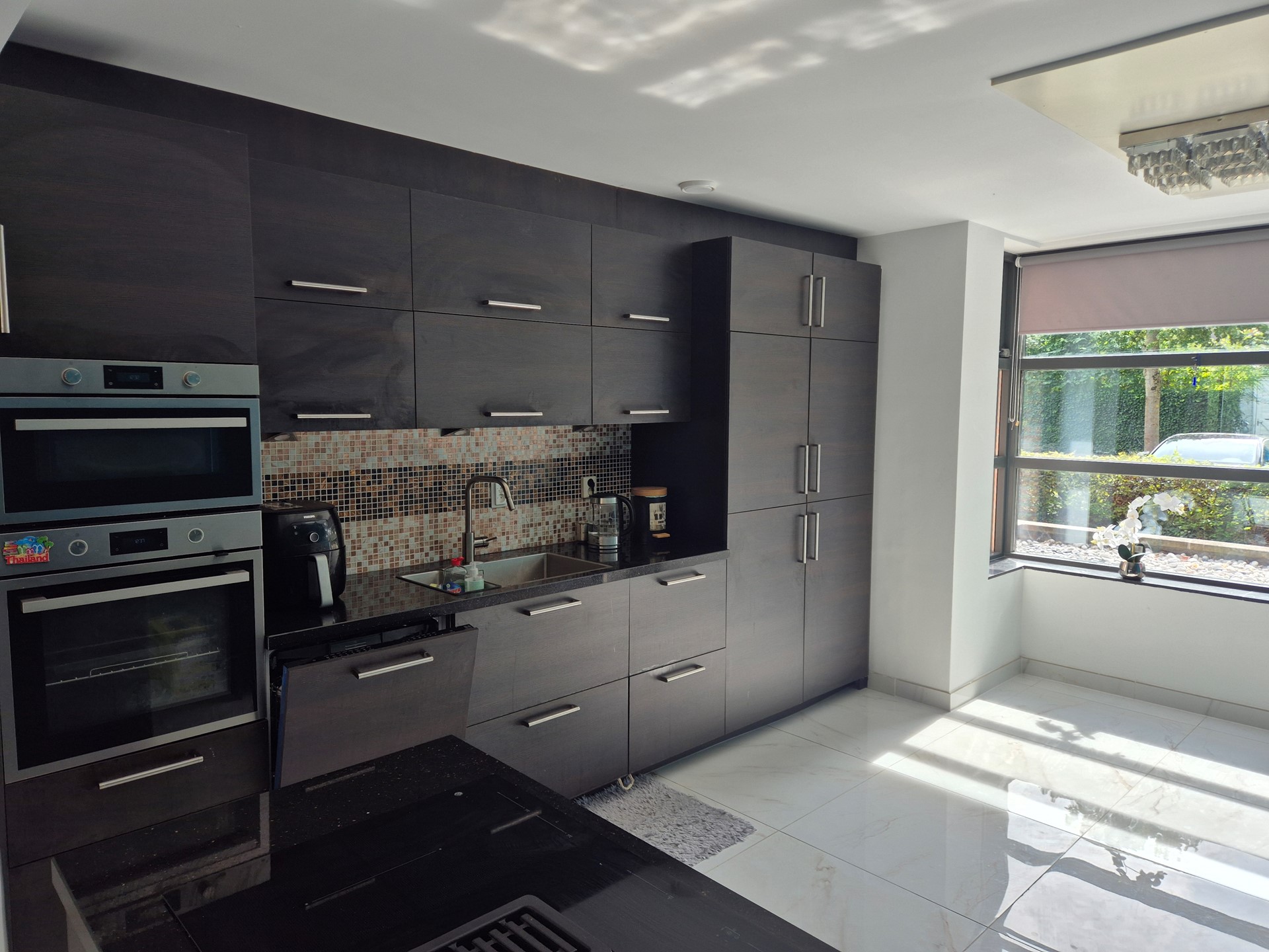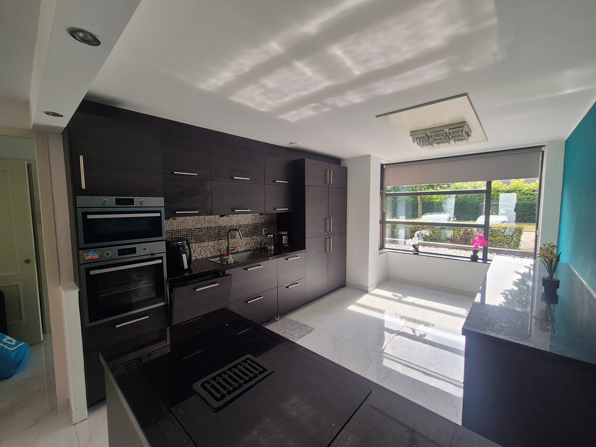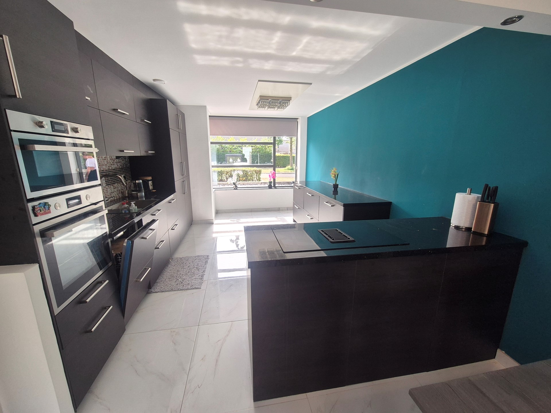Royale entree/hal met de meterkast, toilet, trapkast en toegang tot de ruime living. De lichte en ruime woonkamer bevindt zich aan de achterzijde en heeft middels een tuindeur toegang tot de ruime en zonnige achtertuin. De woonkeuken is gelegen aan de voorzijde van de woning. De inbouwkeuken in rechte opstelling is voorzien van diverse inbouwapparatuur waaronder een vaatwasser, kookplaat, combi-oven, afzuigschouw en koelkast.