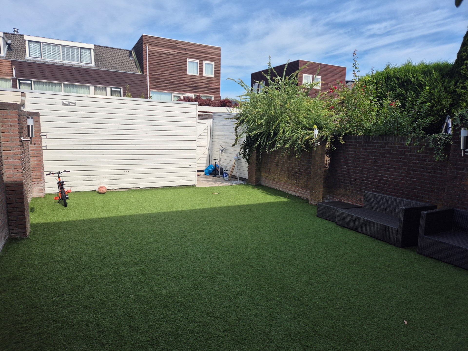 De zonnige achtertuin is gelegen op het noordwesten, ideaal als u op zomerse dagen ook ná uw werk nog van de zon wilt genieten. De tuin is verder voorzien van sierbestrating en houten berging (15 m2) en achterom.