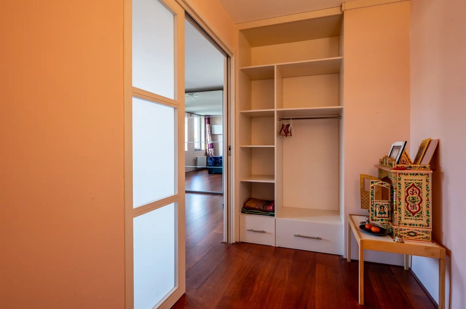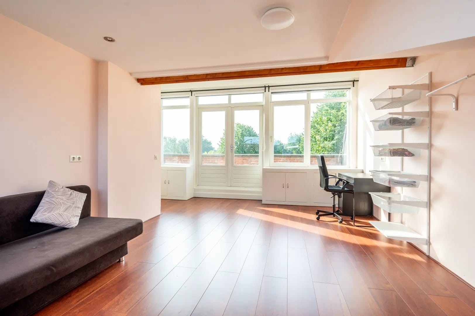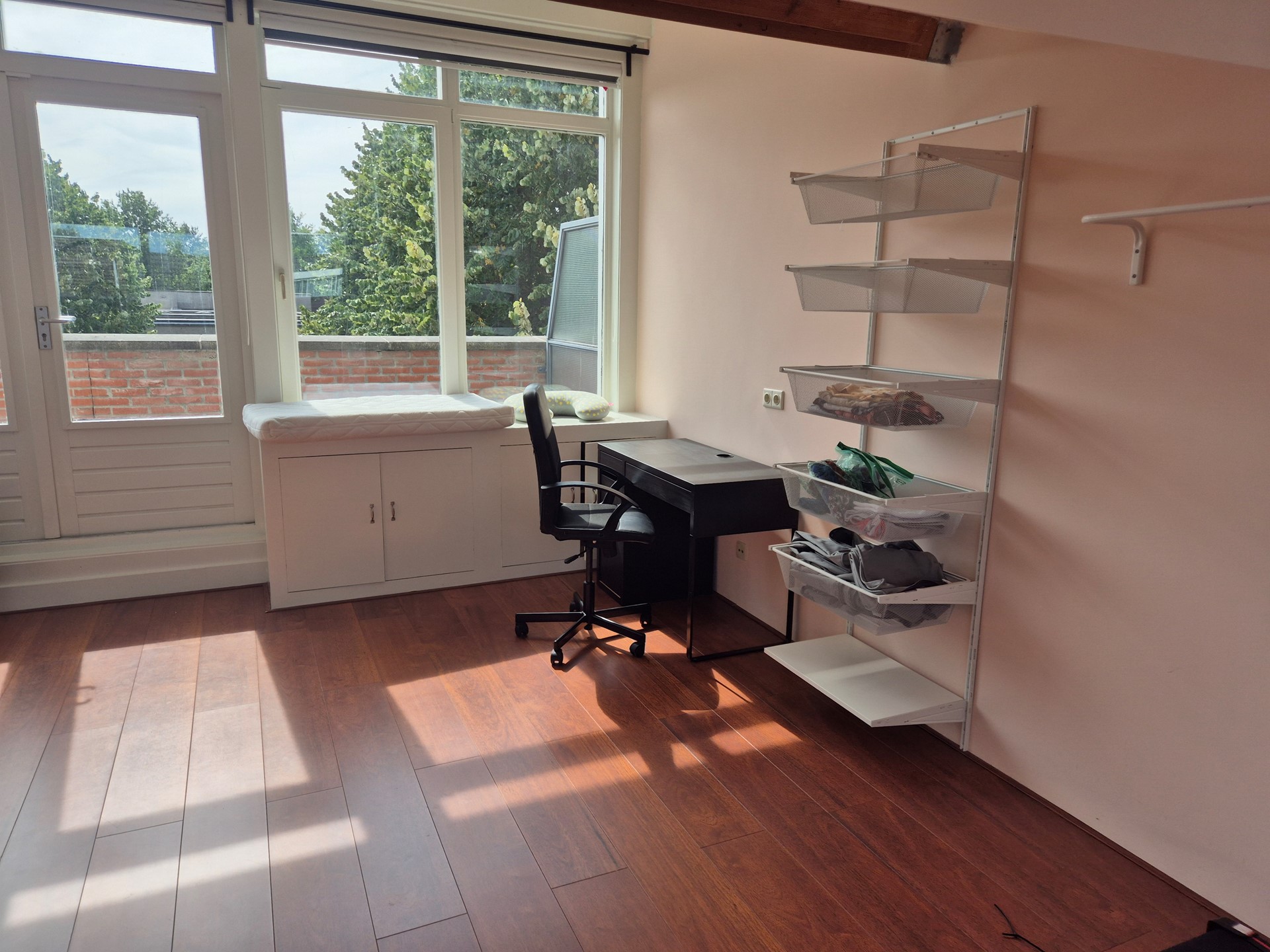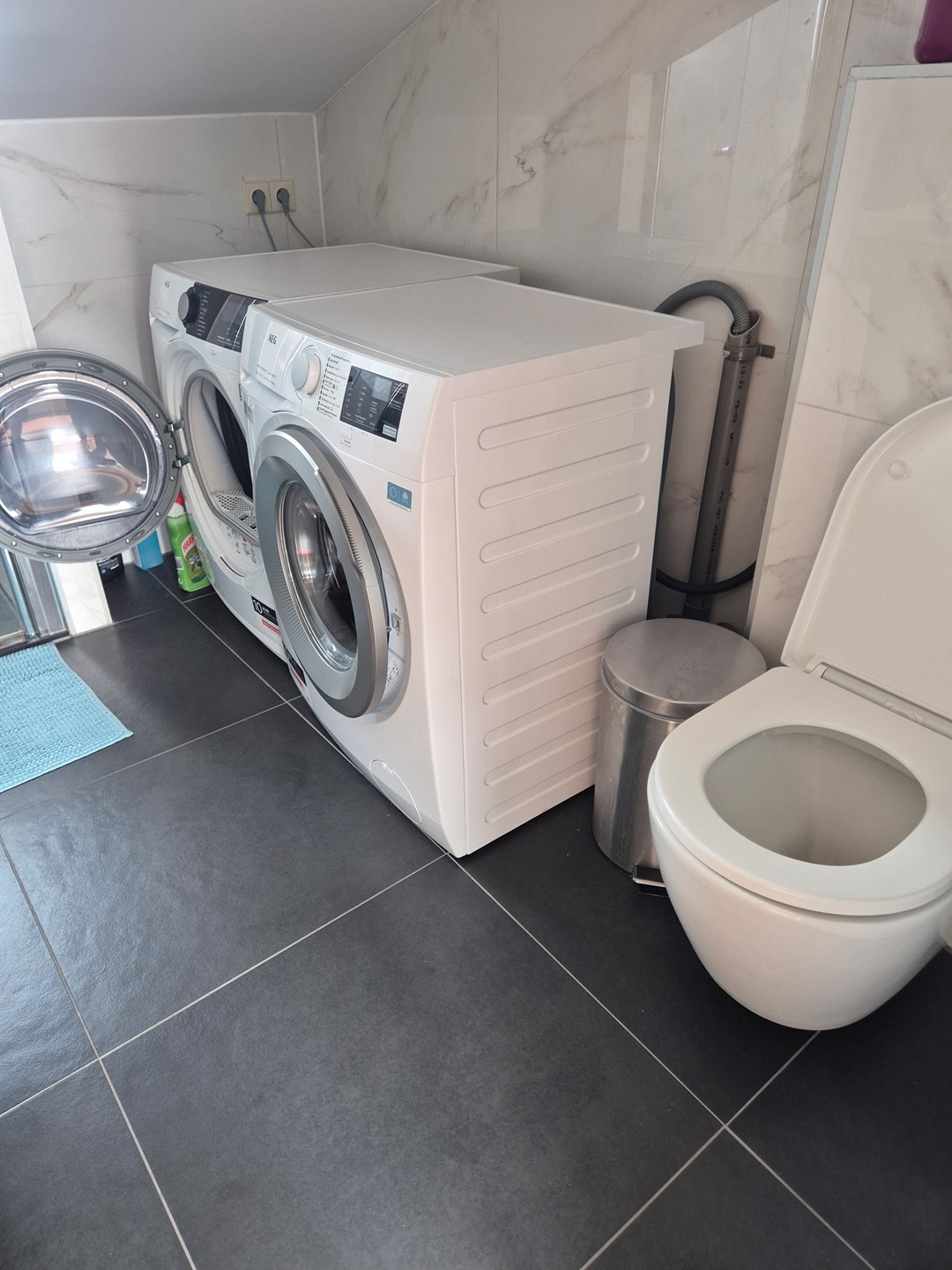 Voorzolder met aansluiting voor wasmachine- en droger en toegang tot de 4e ruime zolderkamer met dakterras. Het dakterras (11 m2) is gelegen op het zuidoosten en heeft vrij uitzicht aan de voorzijde. Ook op deze verdieping is er een badkamer met douche en toilet dus handig als u gasten heeft. Ook hier is de verdiepingsvloer voorzien van een nette laminaatvloer en ook de wasmachine en droger aansluiting.