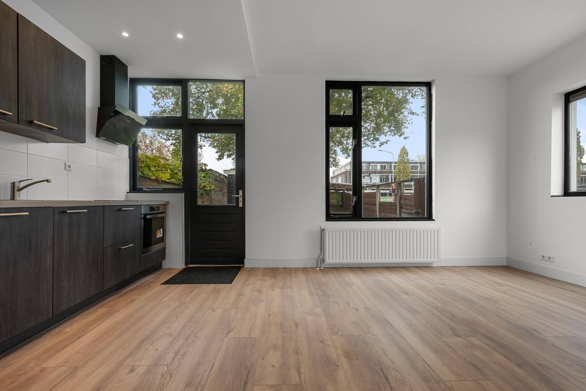 Aan de achterzijde bevindt zich de moderne, open keuken die is voorzien van diverse inbouwapparatuur en voldoende kastruimte. Vanuit de keuken heeft u direct toegang tot de zonnige achtertuin ideaal voor een ontspannen kop koffie in de ochtendzon of een gezellige barbecue met vrienden.