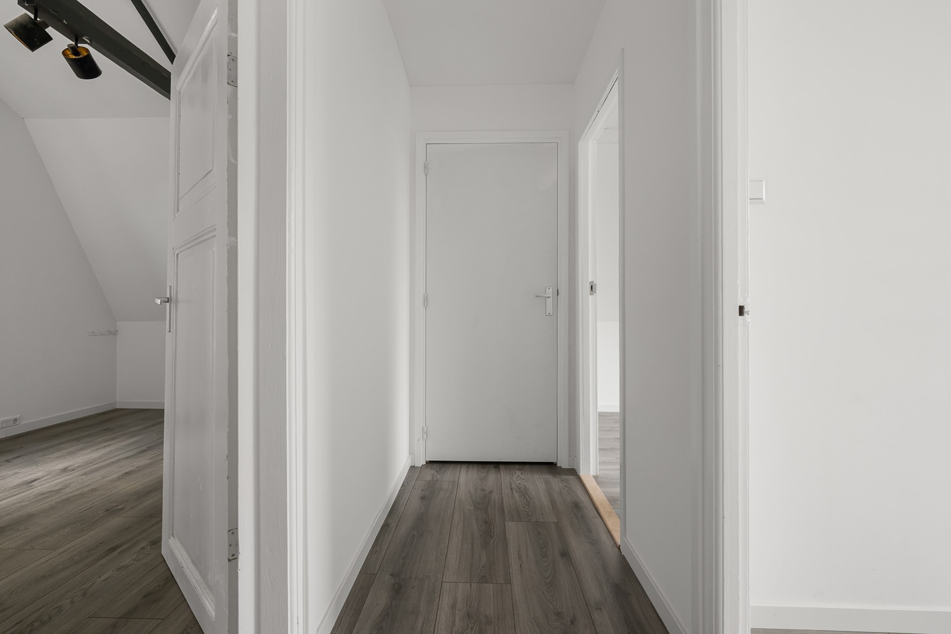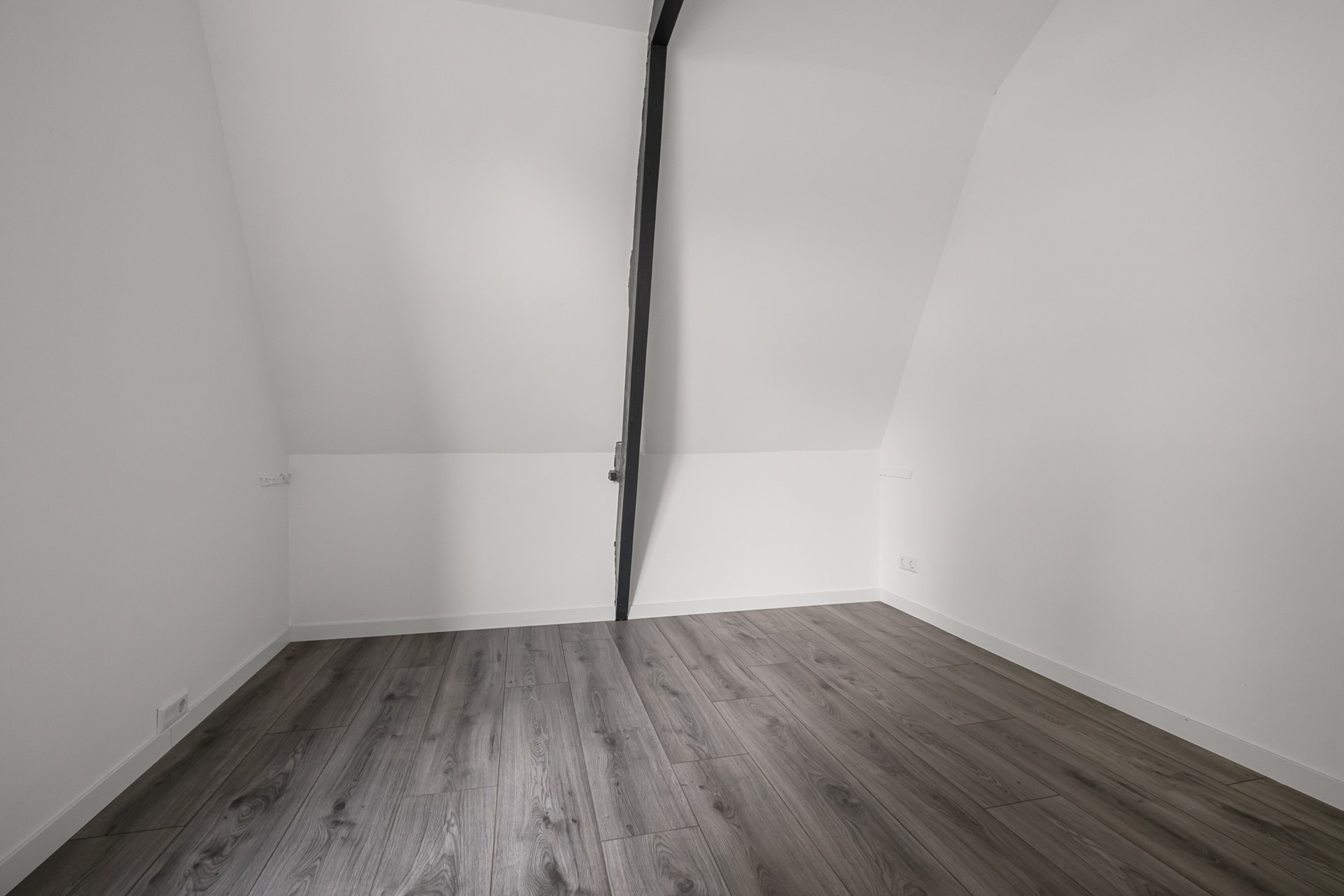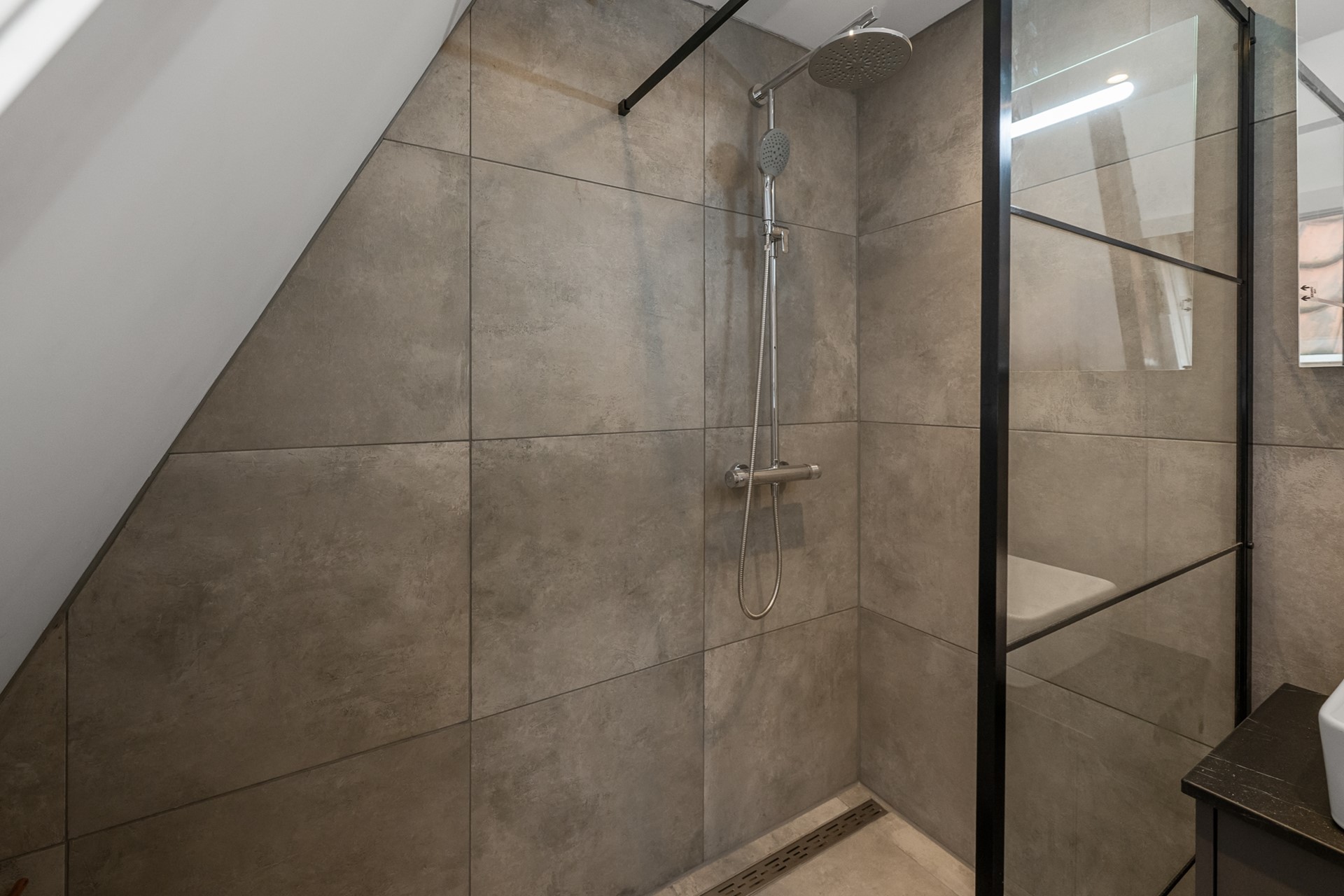 De overloop geeft toegang tot drie goed bemeten slaapkamers, allemaal netjes afgewerkt en voorzien van nieuwe vloeren en gestucte wanden. De moderne badkamer is uitgevoerd met een ruime inloopdouche, een stijlvol wastafelmeubel en er is een aansluiting voor de wasmachine aanwezig. Desgewenst is er ruimte om hier een tweede toilet te realiseren.